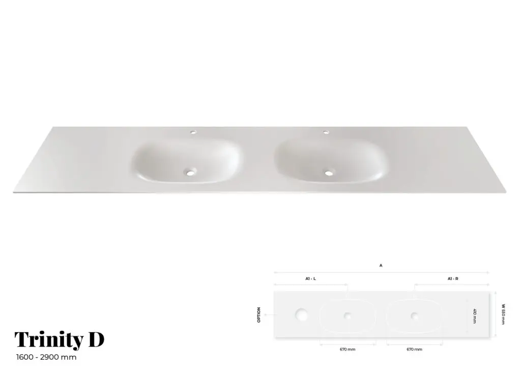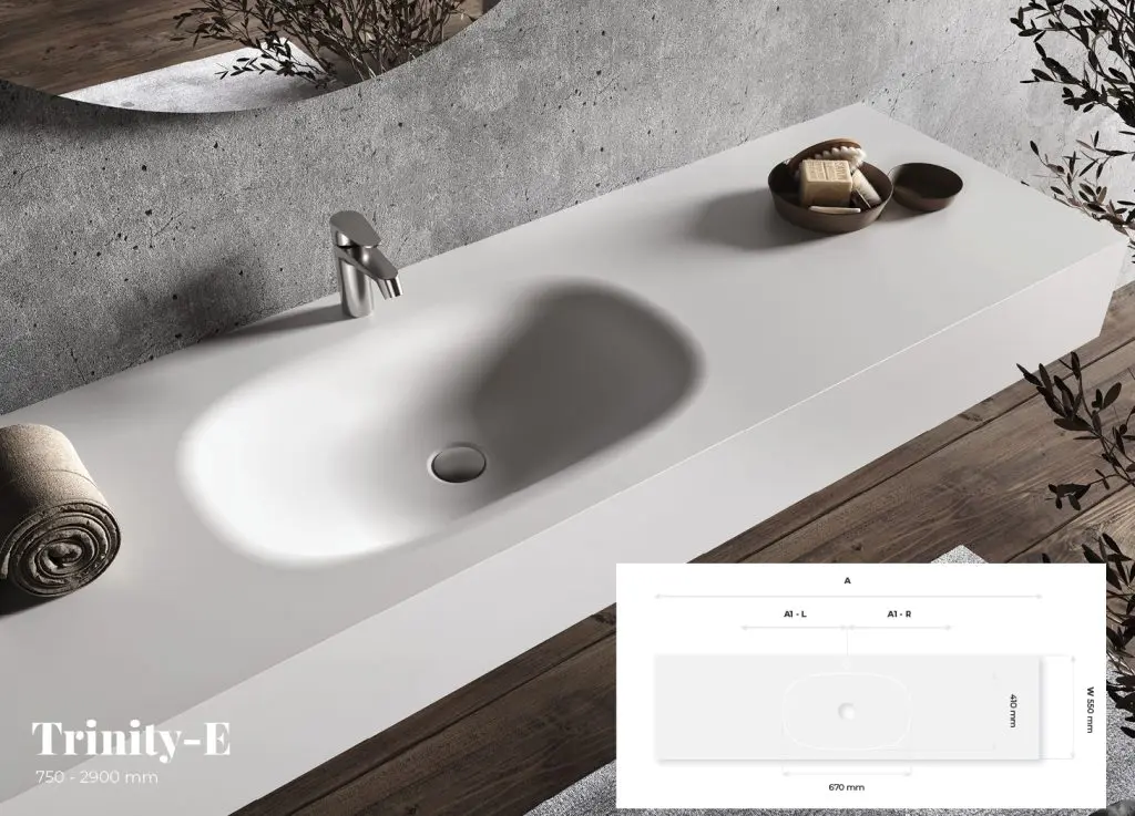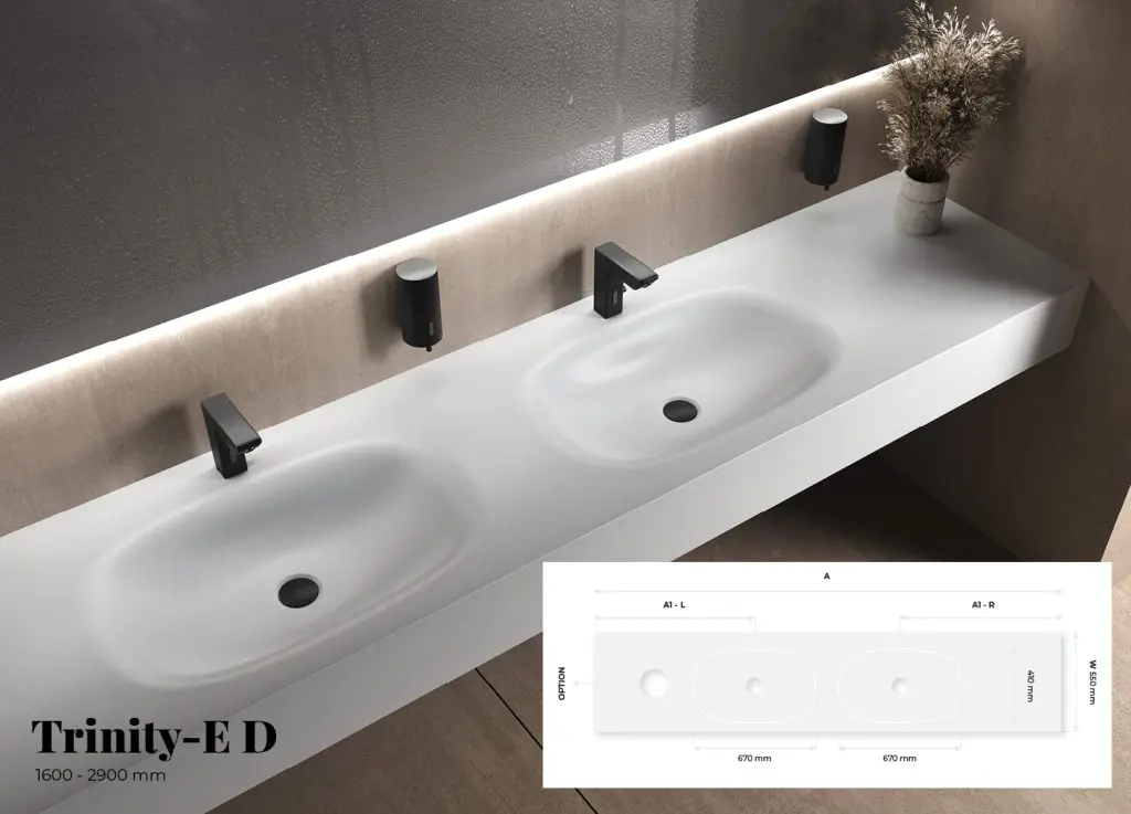 There is also an option for a double washbasin, where customers can select a length ranging from 1600 mm to 2900 mm.