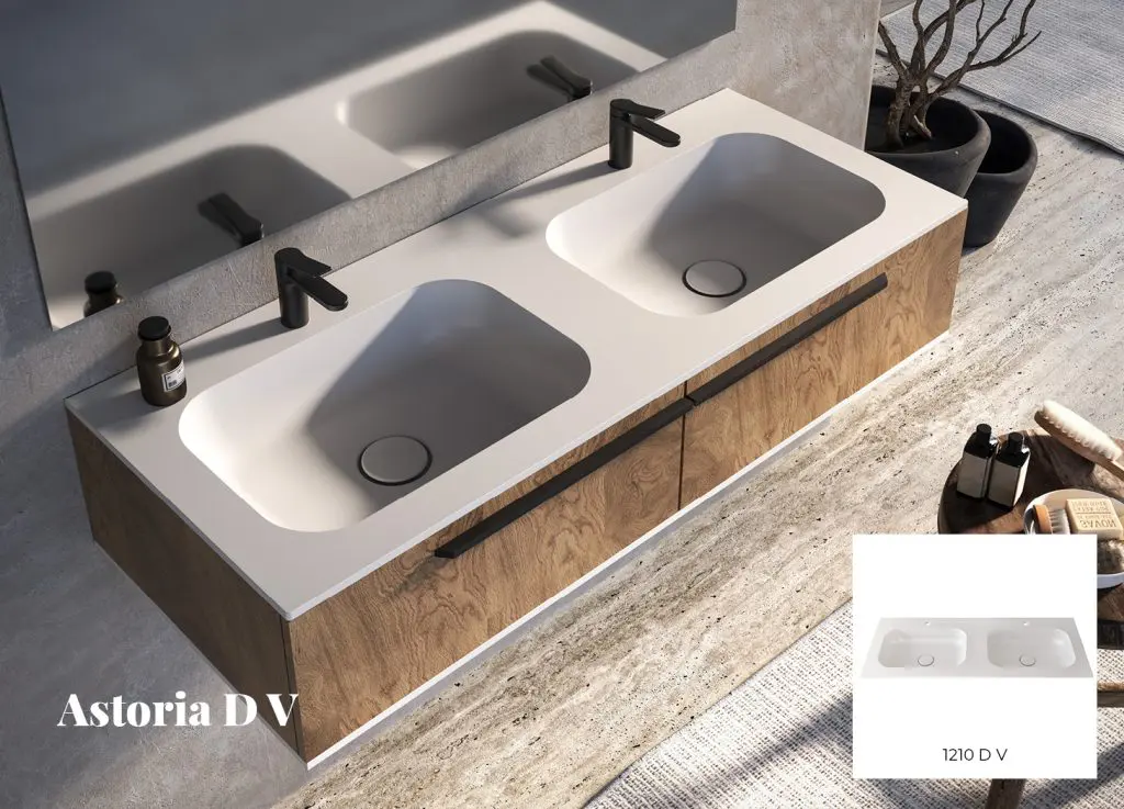 Available with two separate washbasin surfaces (Astoria 1210 D V), making it ideal for bathrooms used by multiple people at the same time or for larger families.