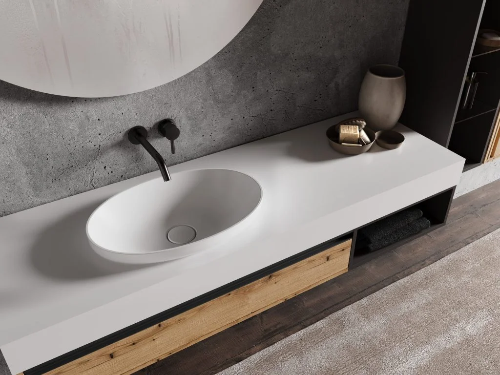 Kerrock washbasins bring modern design and exceptional quality. They are available in a variety of shapes, sizes and colours, allowing you to perfectly adapt them to your style. Whether you want a minimalist or bolder look, you’ll find the right solution for your space. In addition to their aesthetic appeal, Kerrock washbasins are resistant to stains, scratches and impact, ensuring a long life and worry-free use.