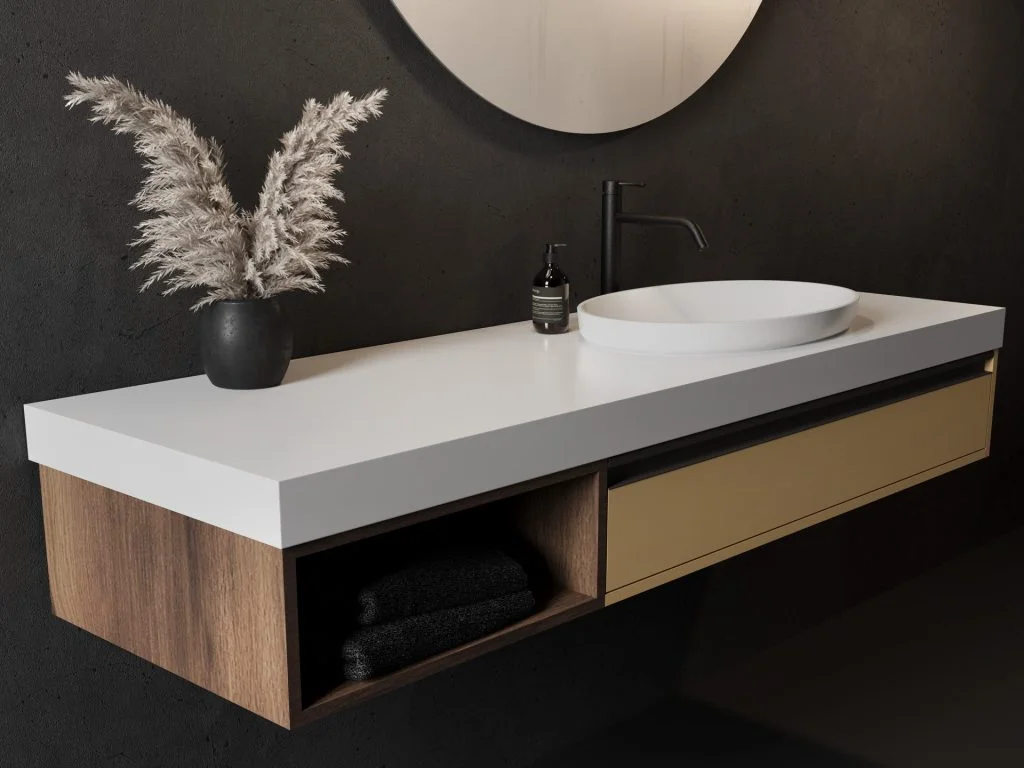 Unique by Kolpasan brings you fully customised bathroom furniture that makes the most of every inch of your space and turns it into an oasis of comfort. Kerrock material is used for the counters and washbasins, ensuring long-lasting durability and easy maintenance. With this furniture, you will achieve timeless beauty and elegance that will brighten up your bathroom.
